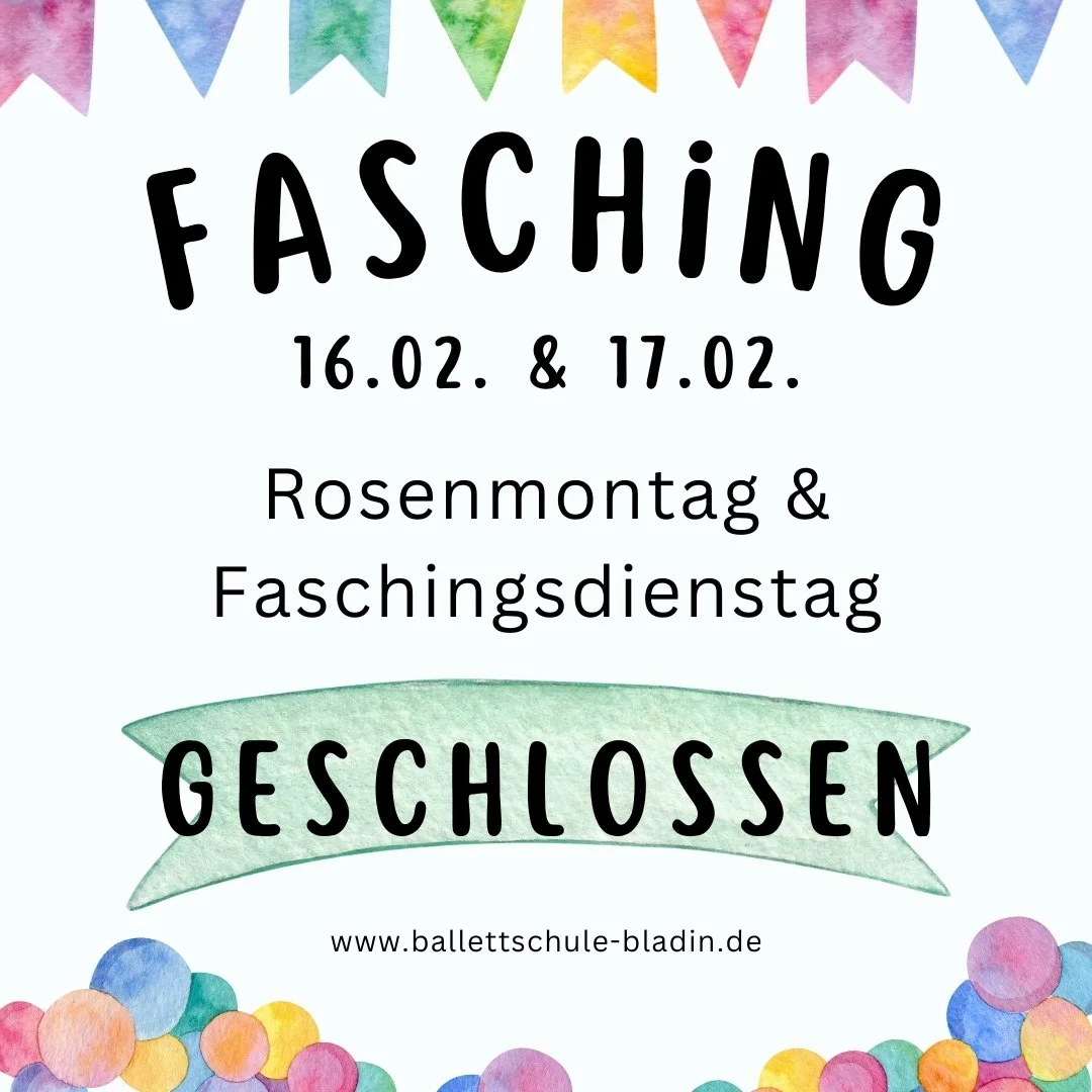 Rosenmontag & Faschingsdienstag bleibt die Ballettschule geschlossen.